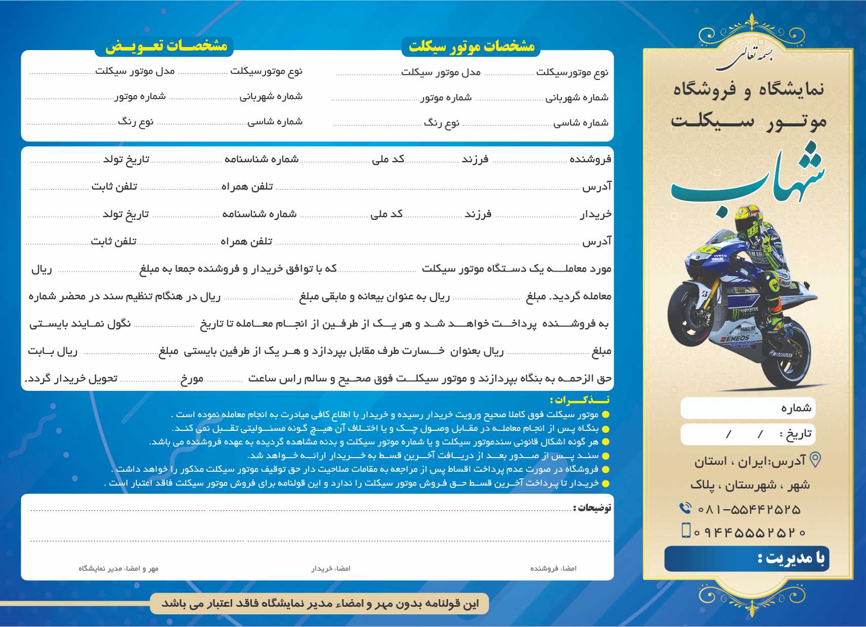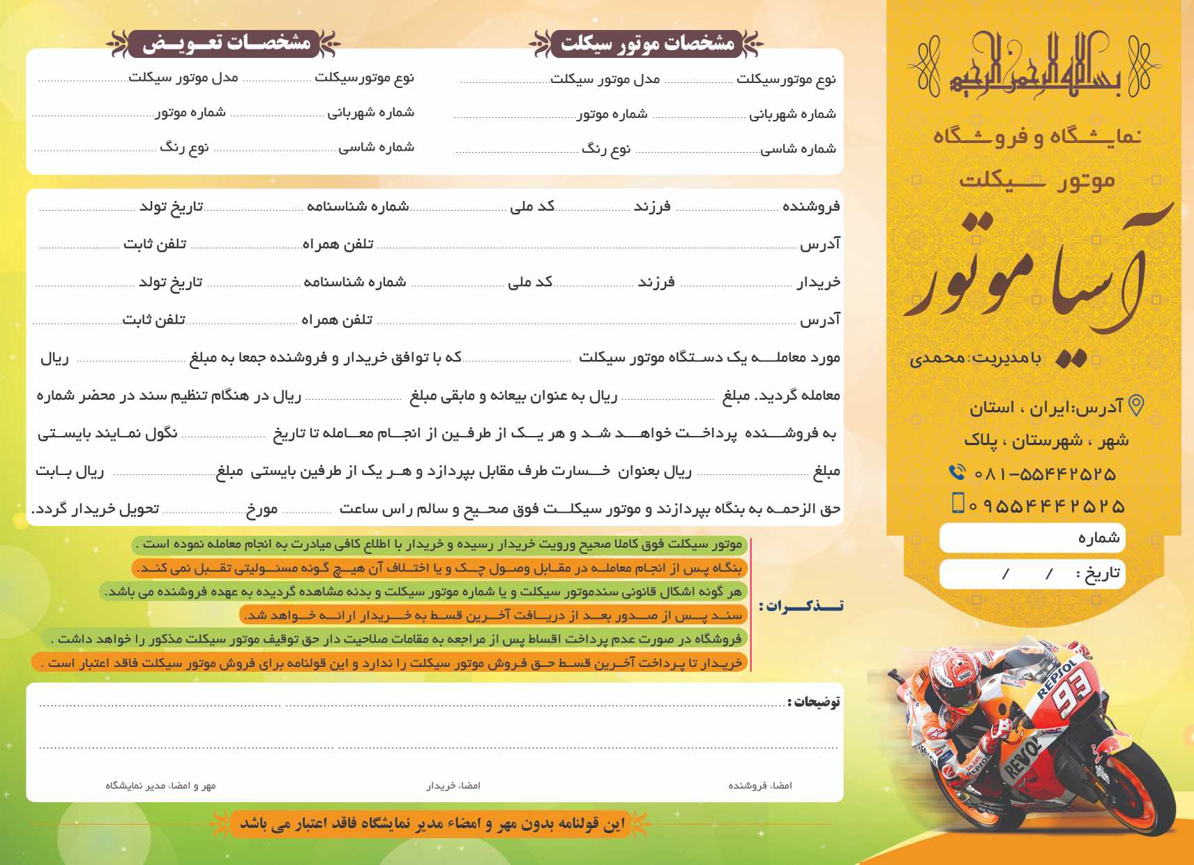 2 فایل PSD لایه باز فتوشاپ – قرارداد فروش موتور