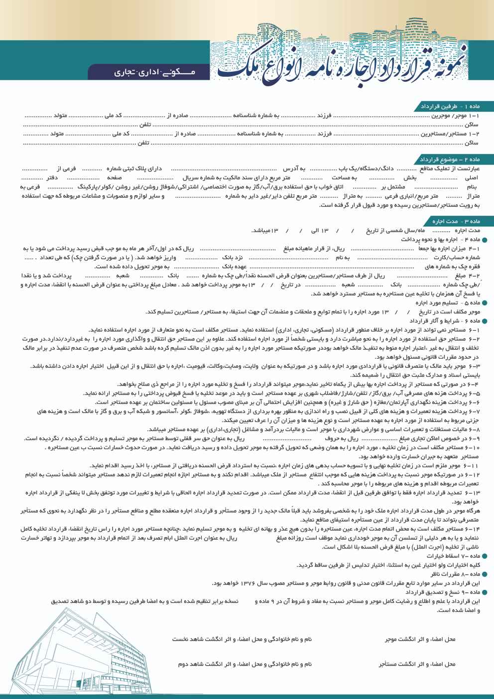1 فایل PSD قرارداد اجاره نامه – مسکونی، اداری و تجاری